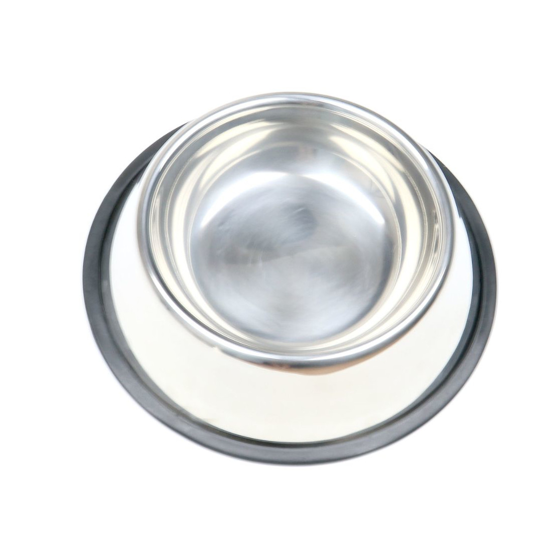 Ανοξείδωτο μπολ φαγητού και νερού με αντιολισθητική βάση σε ασημί χρώμα.