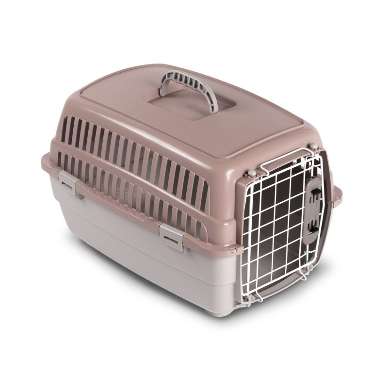Κλουβί μεταφοράς με μεταλλική πόρτα ασφαλείας. Προδιαγραφές IATA. Σε χρώμα μπεζ, ιδανικό για μικρά ζώα, όπως γάτες και μικρόσωμοι σκύλοι