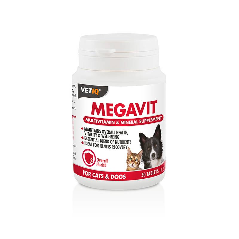 Το VetIQ Megavit είναι ένα υψηλής περιεκτικότητας σε βιταμίνες και μεταλλικά στοιχεία συμπλήρωμα διατροφής, ειδικά σχεδιασμένο για τη βελτίωση της υγείας, ζωτικότητας και ευεξίας του ζώου σας. Περιέχει ένα ολοκληρωμένο μείγμα απαραίτητων θρεπτικών συστατικών για συνολική τόνωση. Συνιστάται για σκύλους & γάτες όλων των φυλών και είναι ιδανικό για περιόδους άγχους, όταν η ανάγκη για θρεπτικά συστατικά είναι υψηλή, όπως η ανάρρωση μετά από ασθένεια ή μετά την γαλουχία.