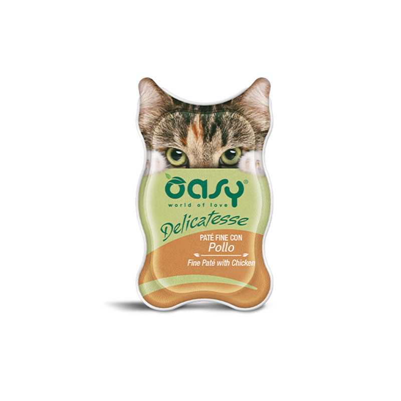 Δοκιμάστε την σειρά πλήρων τροφών Delicatesse από την OASY για τη γάτα σας, διαθέσιμη σε εύγεστο πατέ με πολύ απαλή υφή, κατάλληλο για τους πιο απαιτητικούς ουρανίσκους. Γεύση Κοτόπουλο
