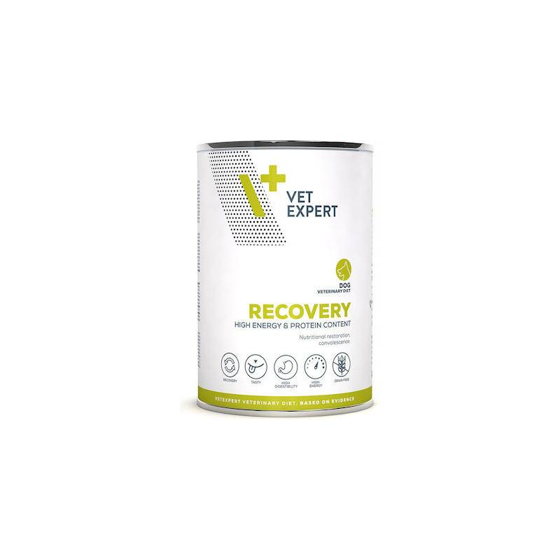 Υγρή τροφή (κονσέρβα) 400 γρ., από την VetExpert, κατάλληλη για σκύλους κατά το στάδιο της αποθεραπείας. Βοηθάει στην καλύτερη ενυδάτωση του οργανισμού του σκύλου σας και καθώς περιέχει χαμηλό ποσοστό σε υδατάνθρακες σε σύγκριση με τη ξηρά τροφή, συμβάλλει στην αποφυγή δυσπεψιών. Συνιστάται για τη γρήγορη αποθεραπεία και ανάκαμψη καθώς συμβάλλει στην ενίσχυση του ανοσοποιητικού.