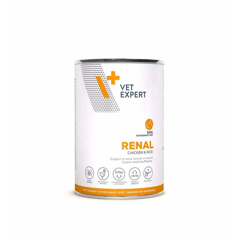 Πλήρης και ισορροπημένη διαιτητική τροφή για ενήλικους σκύλους, που προορίζεται για την υποστήριξη της νεφρικής λειτουργίας σε περίπτωση χρόνιας νεφρικής ανεπάρκειας. Η τροφή κλινικής δίαιτας Renal Dog χαρακτηρίζεται από μειωμένη περιεκτικότητα σε πρωτεΐνη και μειωμένη περιεκτικότητα σε νάτριο και φώσφορο