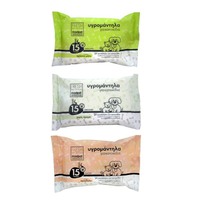 Υγρομάντηλα με pH κατάλληλο για καθημερινή χρήση σε κατοικίδια ζώα με άρωμα αμύγδαλο